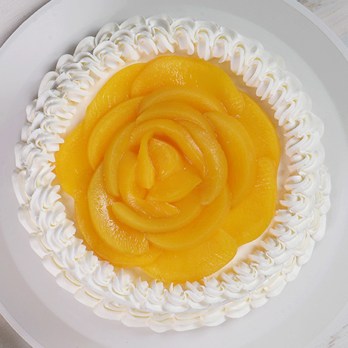 Pedir por WhatsApp Delicioso 3 leches de vainilla decorado con topping sabor a nata 100% vegetal y duraznos.