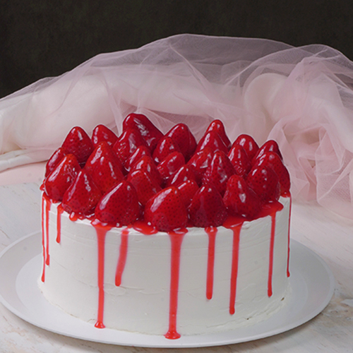 Pedir por WhatsApp Delicioso 3 leches de vainilla decorado con topping sabor a nata 100% vegetal y fresas.