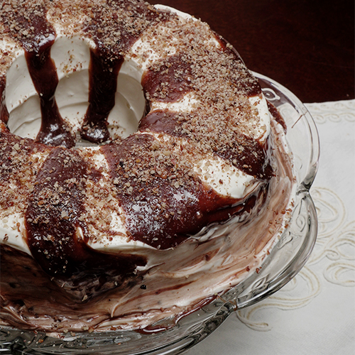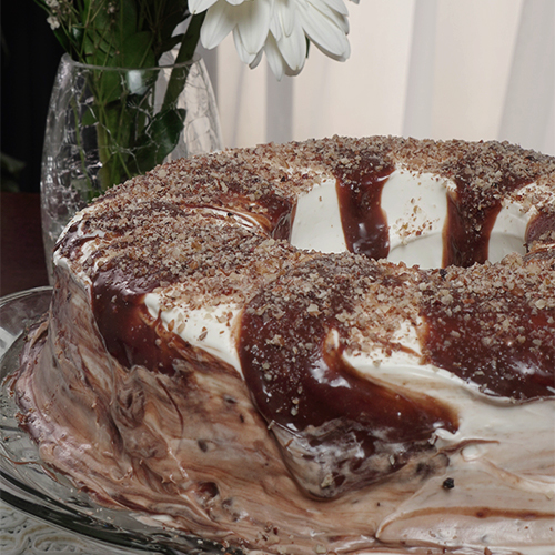 Simplemente DeliciosoCremoso pan de chocolate decorado con queso crema y derretido de chocolate Milky Way muy al estilo de Lavanda.