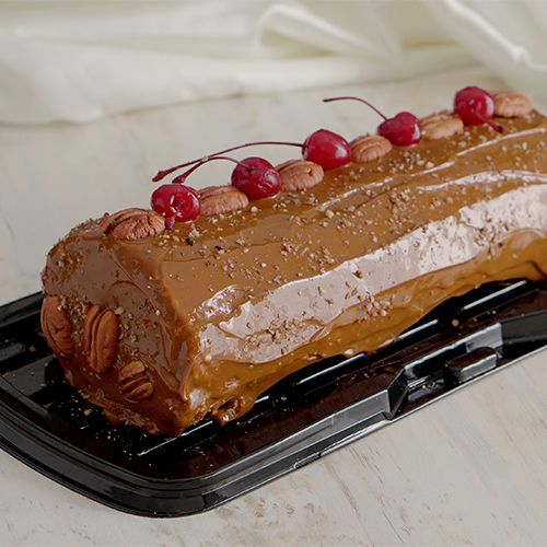 Pedir por WhatsApp Delicioso biscocho de vainilla relleno de mermelada casera de piña y decorado con dulce de leche y nuez.